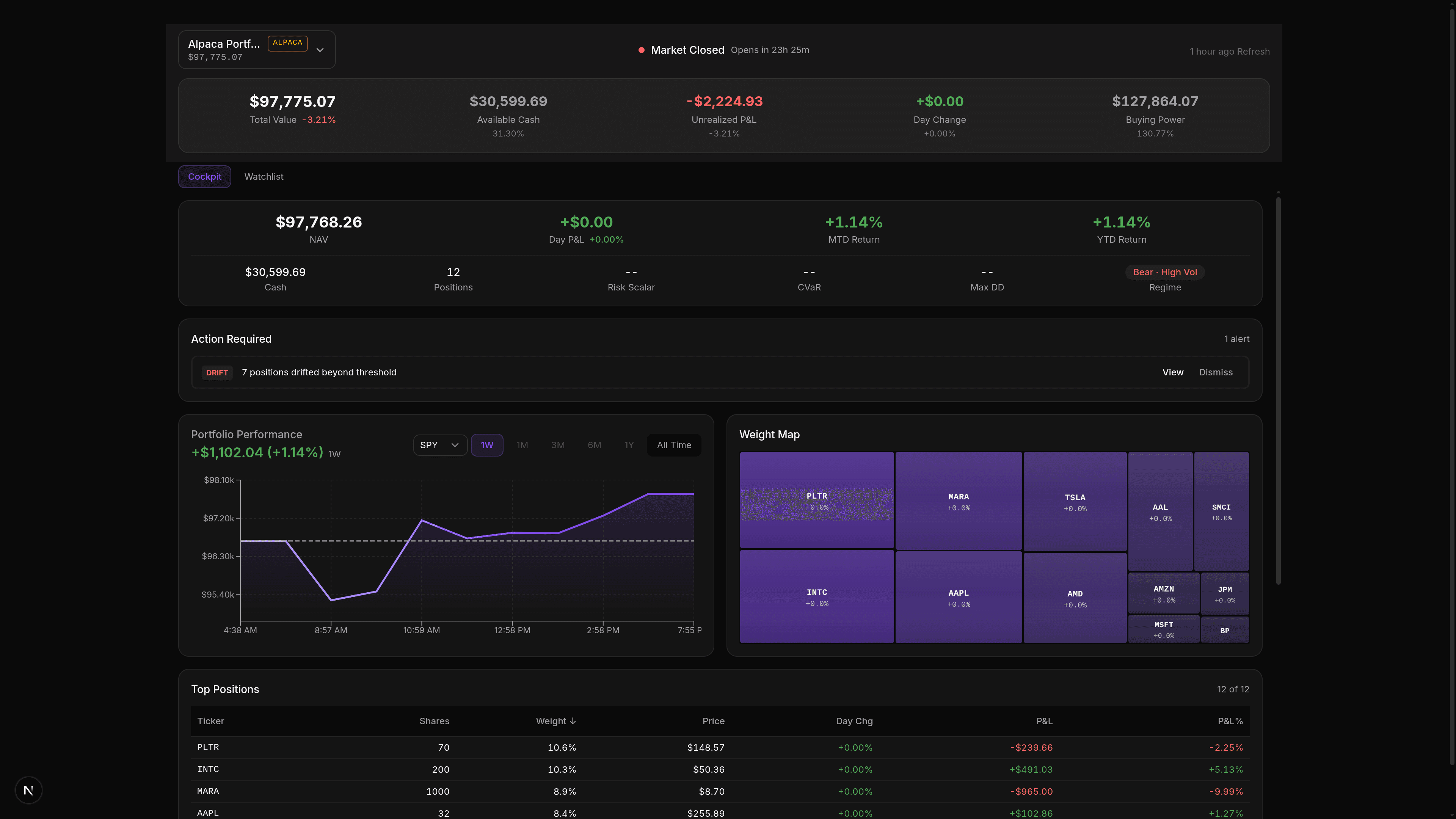 Factor scoring, regime-aware construction, strategy validation, and live execution through conversational AI.
